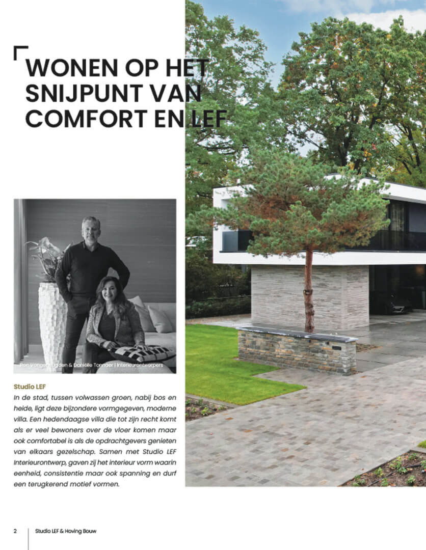 In de stad, tussen volwassen groen, nabij bos en heide, ligt deze bijzondere vormgegeven, moderne villa. Een hedendaagse villa die tot zijn recht komt als er veel bewoners over de vloer komen maar ook comfortabel is als de opdrachtgevers genieten van elkaars gezelschap. Samen met Studio LEF Interieur ontwerp, gaven zij het interieur vorm waarin eenheid, consistentie maar ook spanning en durf een terugkerend motief vormen.